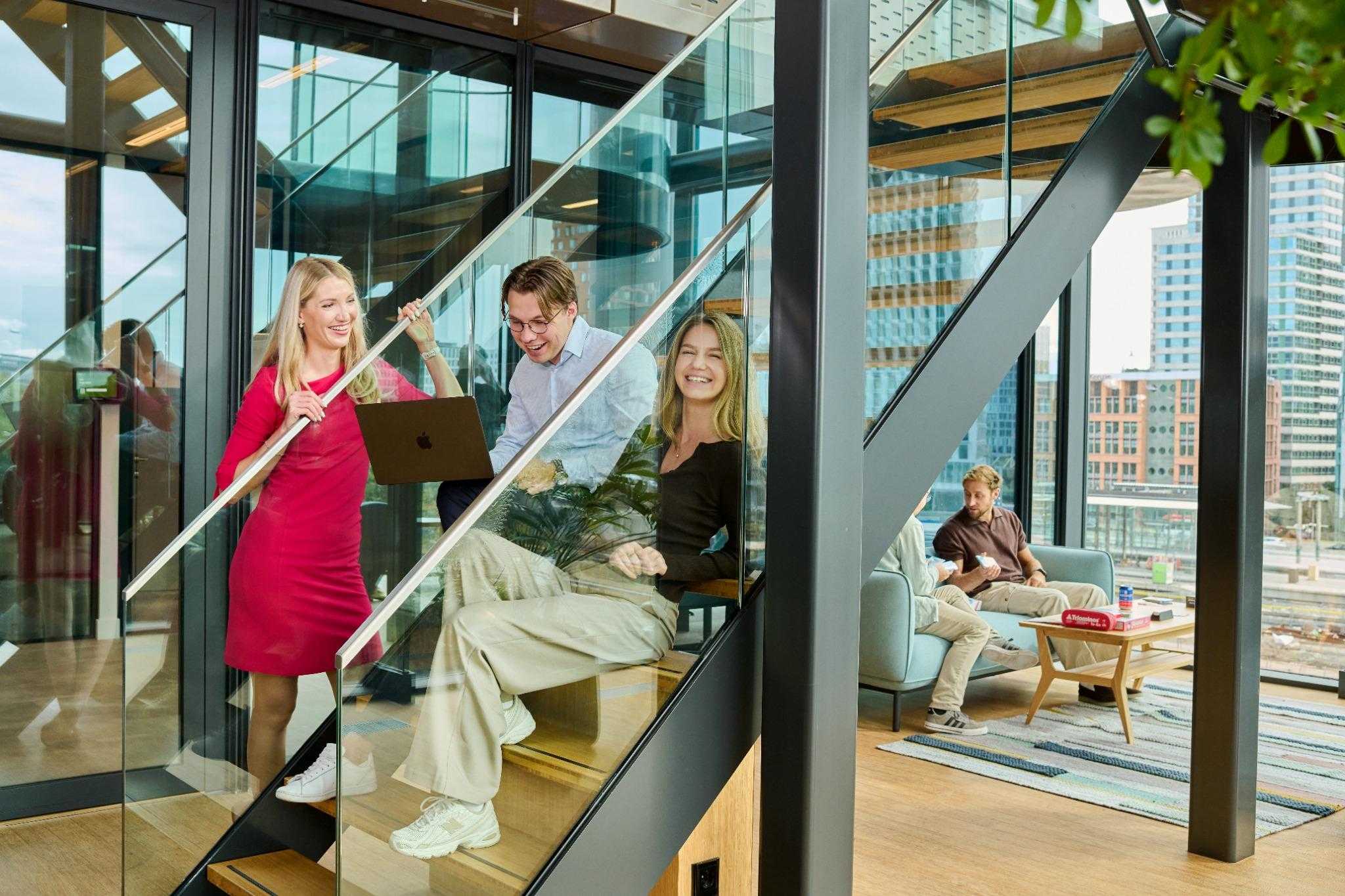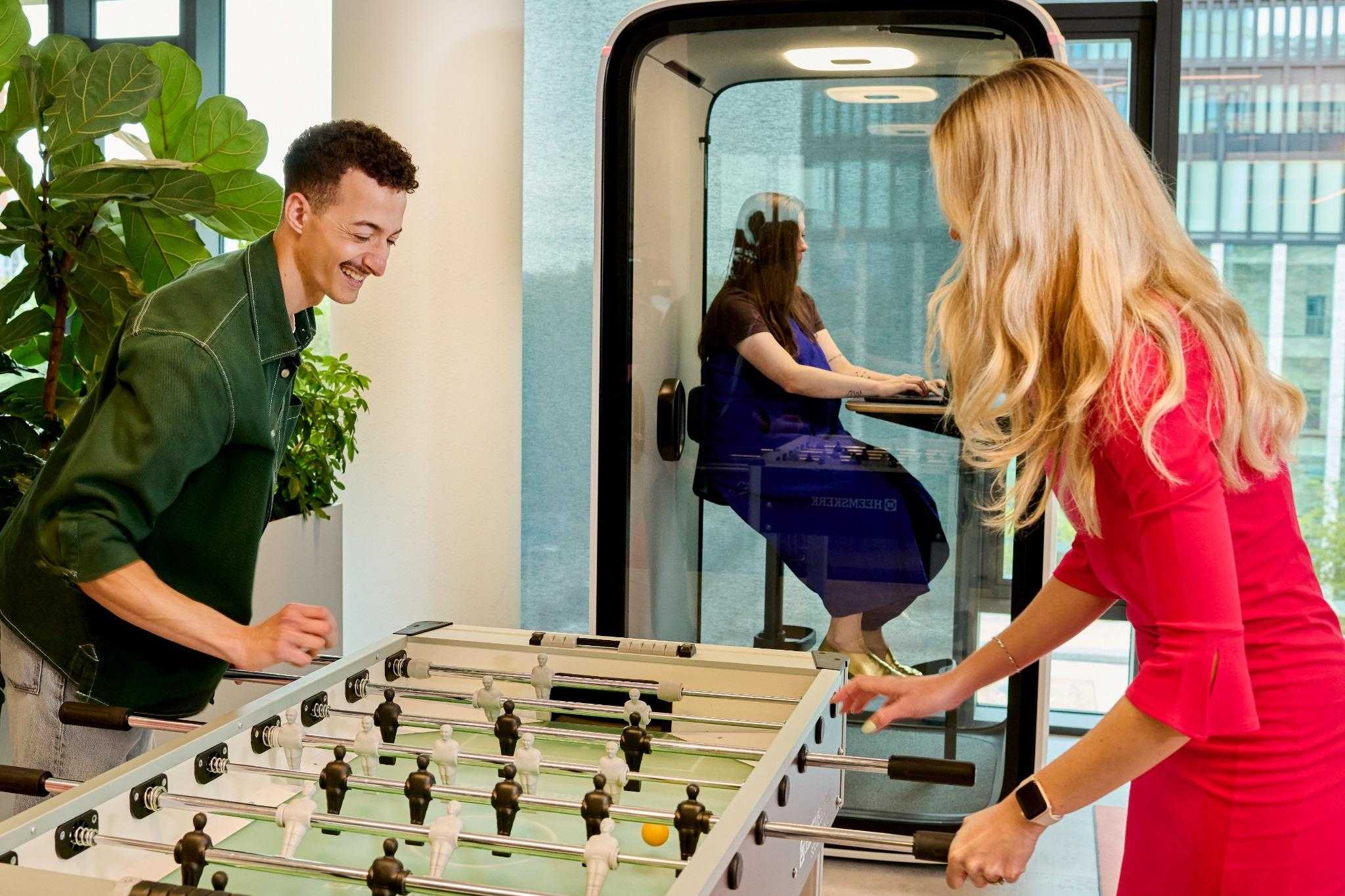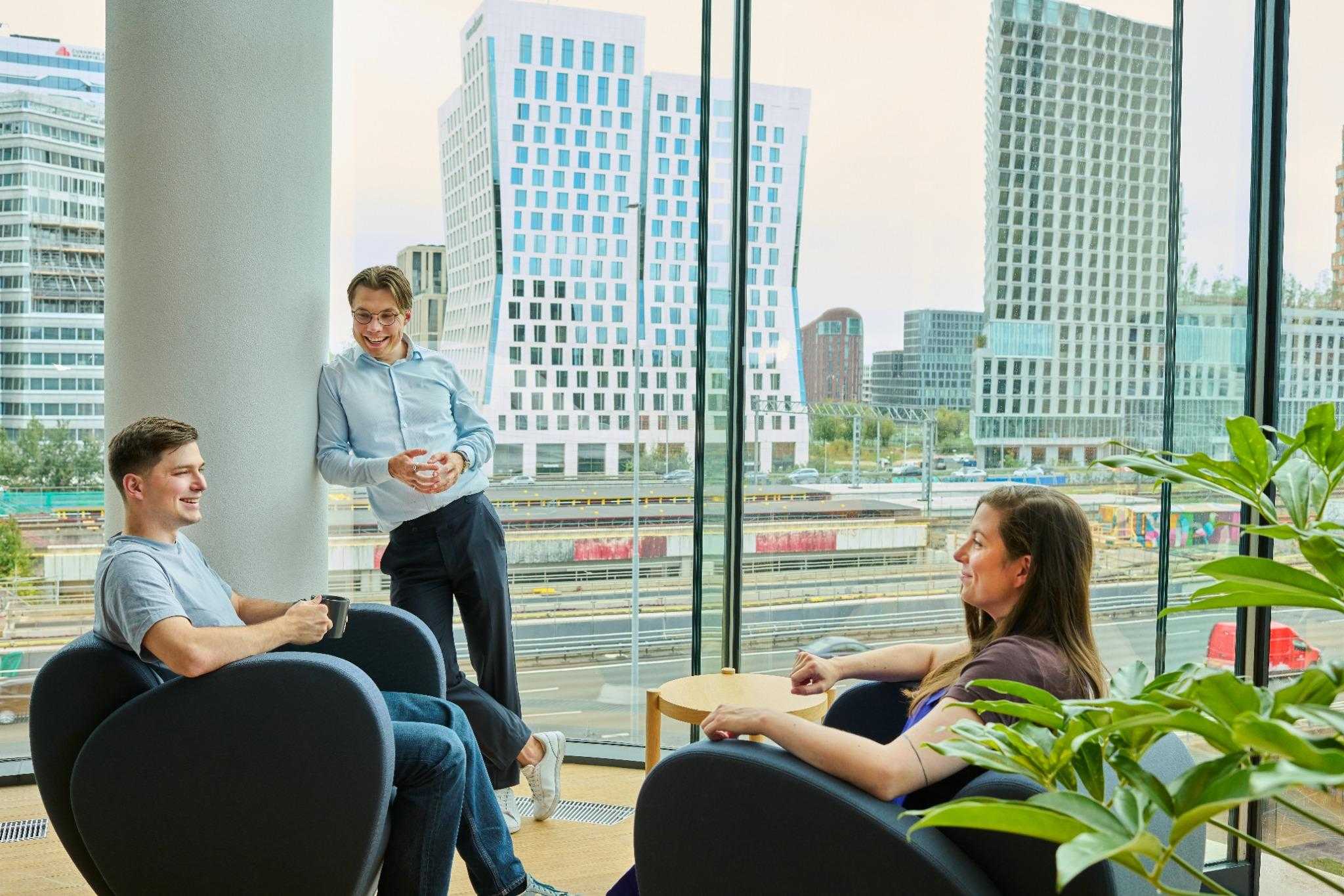 Step into our meeting rooms named after iconic Dutch figures like van Gogh and Jacobs, or find privacy in one of six cozy phone booths for ultimate concentration. The Amsterdam hub has three kitchens where our love for the aroma of coffee and tea fills the air. Serving as a center of many gatherings, a lounge and playroom area is equipped with a PS5, foosball table, and a snack corner.